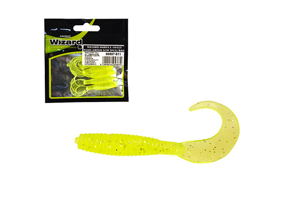 A csomag tartalma:Wizard Harpex Twist Fluo-Green 5cm Przynęta Sztuczna 5szt.