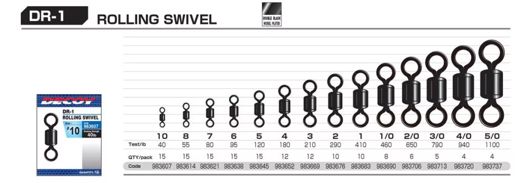 Zawartość opakowania: Decoy Rolling DR-1 7 80lb Krętlik 15szt