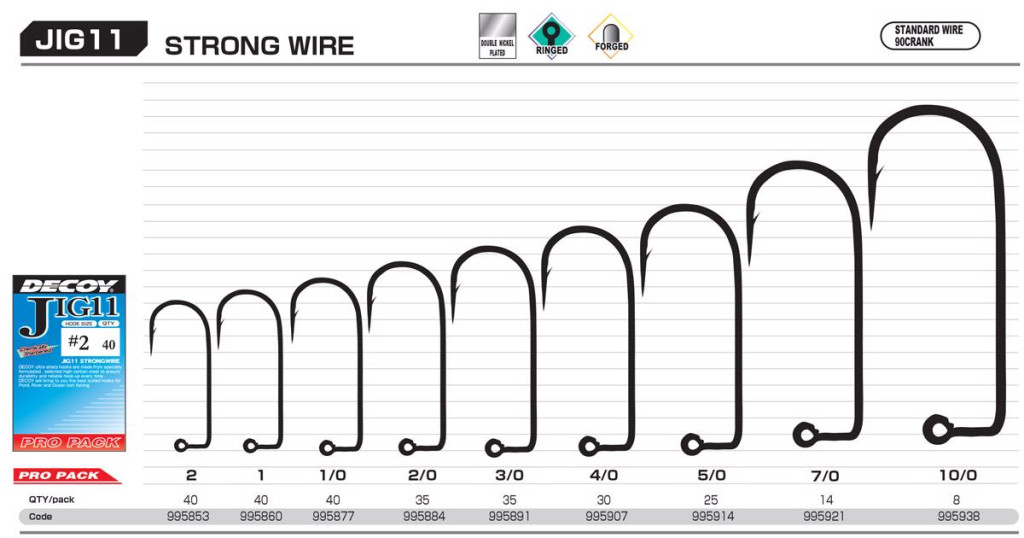 Decoy Pro Pack Jig11 Strong Wire #1/0 Haczyk Jigowy Jednostronny z Oczkiem i Zadziorami 40szt