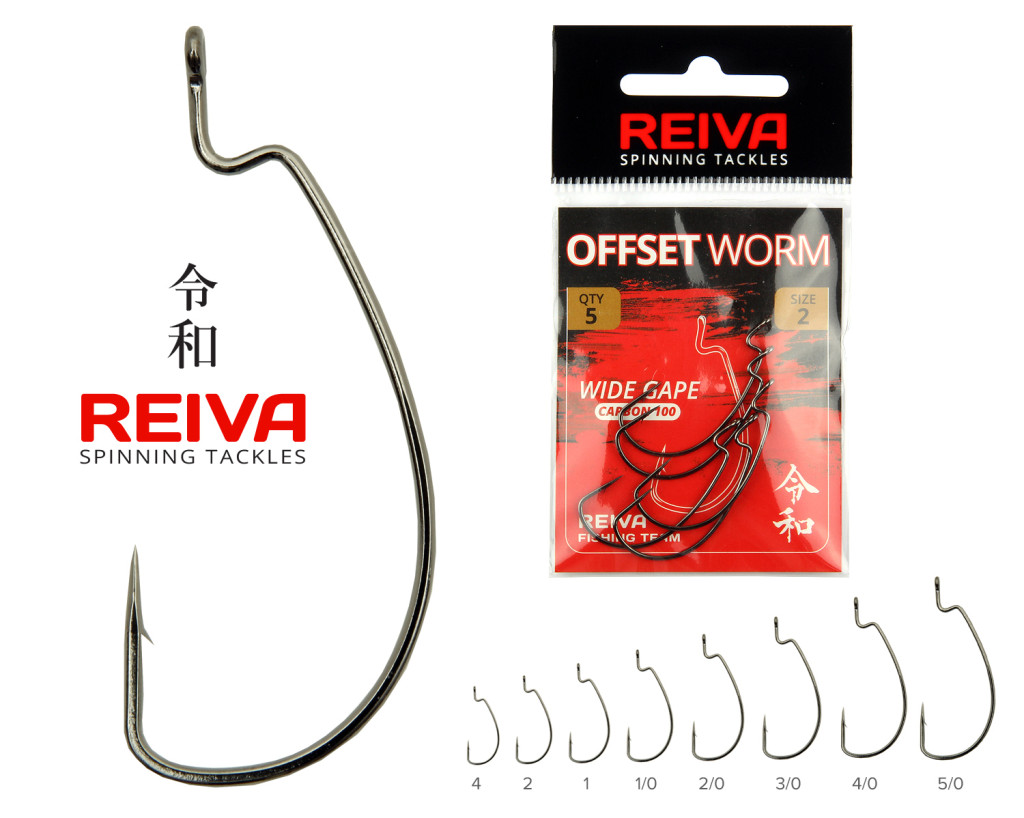 Reiva Offset Worm Czarny 5/0 3szt/opakowanie Haczyk na ryby drapieżne z oczkiem i zadziorem