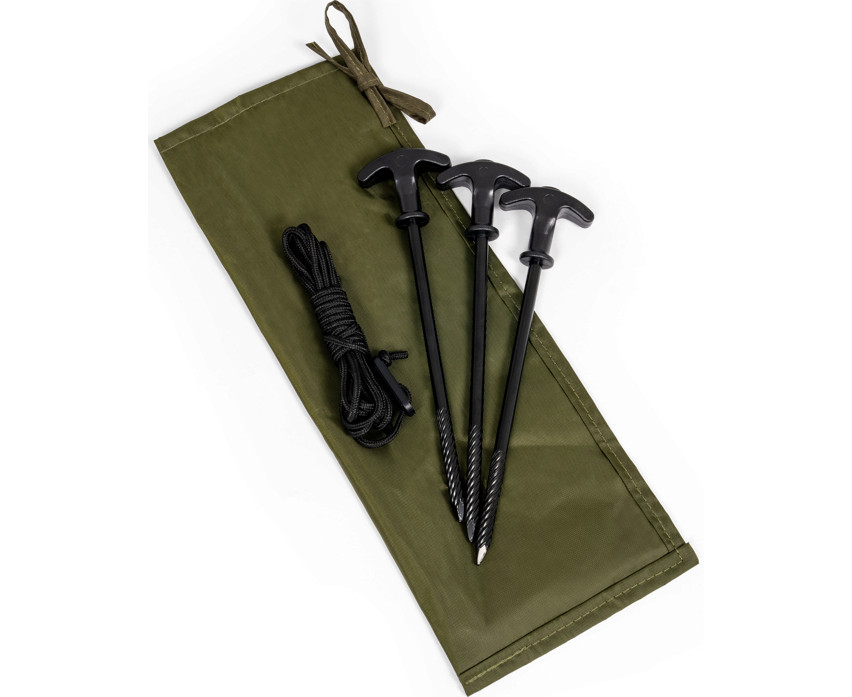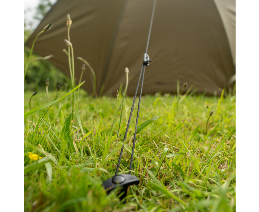 Do brolly dołączona jest linka napinająca, szpilki mocujące oraz dwa tylne punkty mocowania, które zapewniają jeszcze większą stabilność nawet w ekstremalnych warunkach. Dzięki przygotowanym punktom mocowania do bocznych drążków podtrzymujących, parasol można dalej rozbudowywać (drążki nie są częścią zestawu). Całość zbudowana jest na lekkiej, ale solidnej ramie z włókna szklanego, ważącej zaledwie 3,7 kg, co ułatwia transport w dołączonej nylonowej torbie.