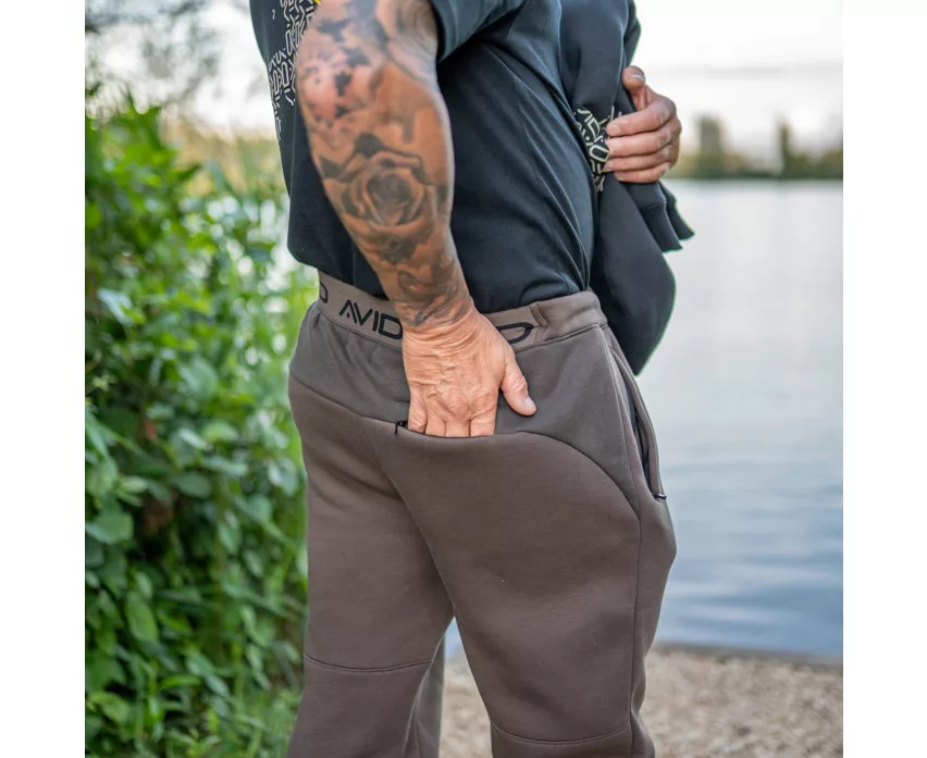Avid Compound Joggers to wysokiej jakości brązowe spodnie dresowe, zaprojektowane specjalnie do wędkowania i aktywnego wypoczynku. Materiał spodni to 80% bawełny i 20% poliestru, co zapewnia idealną równowagę między komfortem, ciepłem i trwałością. Gramatura 290 gramów zapewnia doskonałą izolację cieplną w chłodniejsze dni, a jednocześnie jest dobrze wentylowana, dzięki czemu nadaje się do noszenia przez cały dzień.