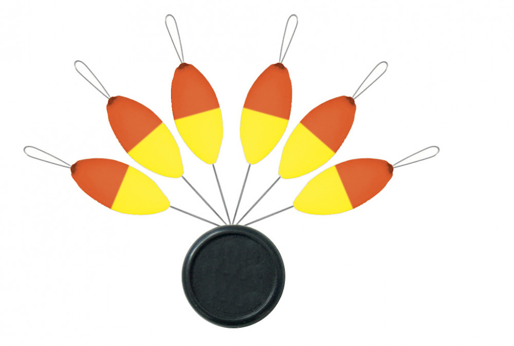XT- BLISTER FLOAT OVAL N°0 (FLUO ORANGE/YEL.) - owalny, dwukolorowy (żółto/pomarańczowy) stoper dla lepszej widoczności. Dostępny w różnych rozmiarach. Opakowanie 6 szt/opakowanie