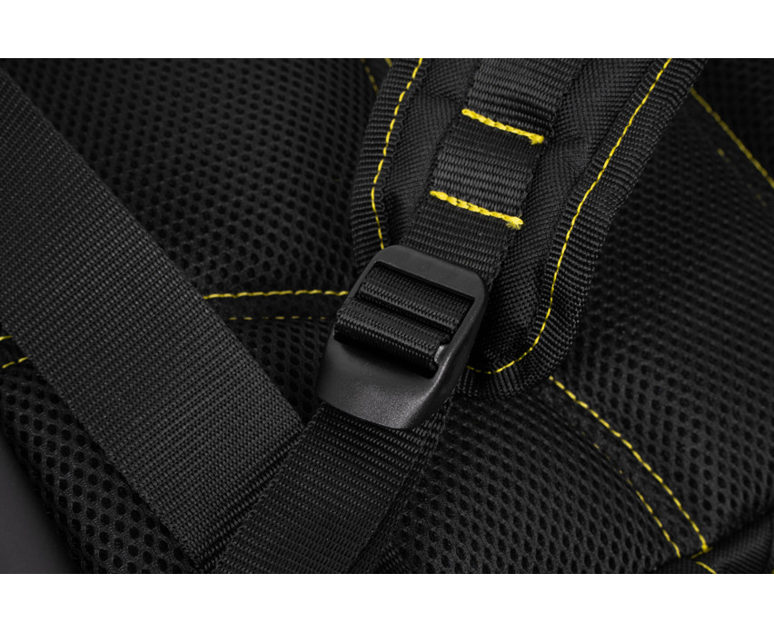Plecak posiada w pełni wyściełane plecy i szelki, które pozostają wygodne nawet podczas dłuższego noszenia. Paski na ramię i biodrowe są w pełni regulowane, dzięki czemu torba idealnie dopasowuje się do różnych typów sylwetek i sposobów noszenia. Uchwyt do przenoszenia został wzmocniony pianką EVA, co zwiększa jego trwałość i komfort podczas transportu ręcznego.