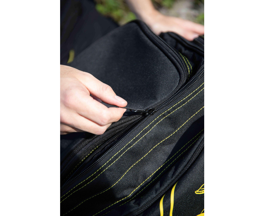 Materiał torby to wysokiej jakości, trwały poliester 500D i 300D, który jest odporny na ścieranie, wilgoć i niekorzystne warunki atmosferyczne. Korzystna cenowo konstrukcja pozwala wędkarzowi na profesjonalne rozwiązanie do przechowywania w przystępnej cenie, bez kompromisów.