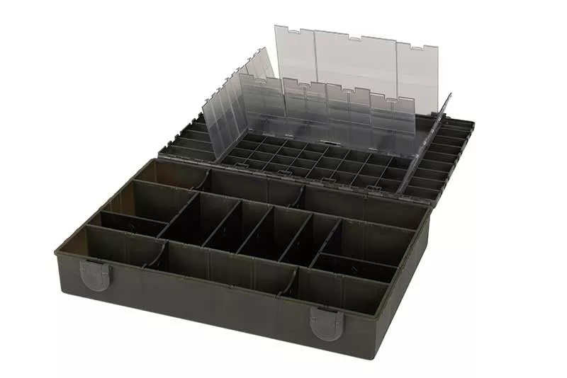A Fox Edges Large Tackle Box egy nagyméretű, strapabíró doboz, amely tökéletesen megfelel a horgászathoz szükséges felszerelés tárolására. A doboz méretei 35 cm x 25 cm x 7 cm, így elegendő helyet biztosít a horgászfelszerelés minden fontos elemének, beleértve az előkéket, a végszerelékeket, a horgot, a zsinórt, a szerelékkészítő eszközöket és még sok minden mást.
