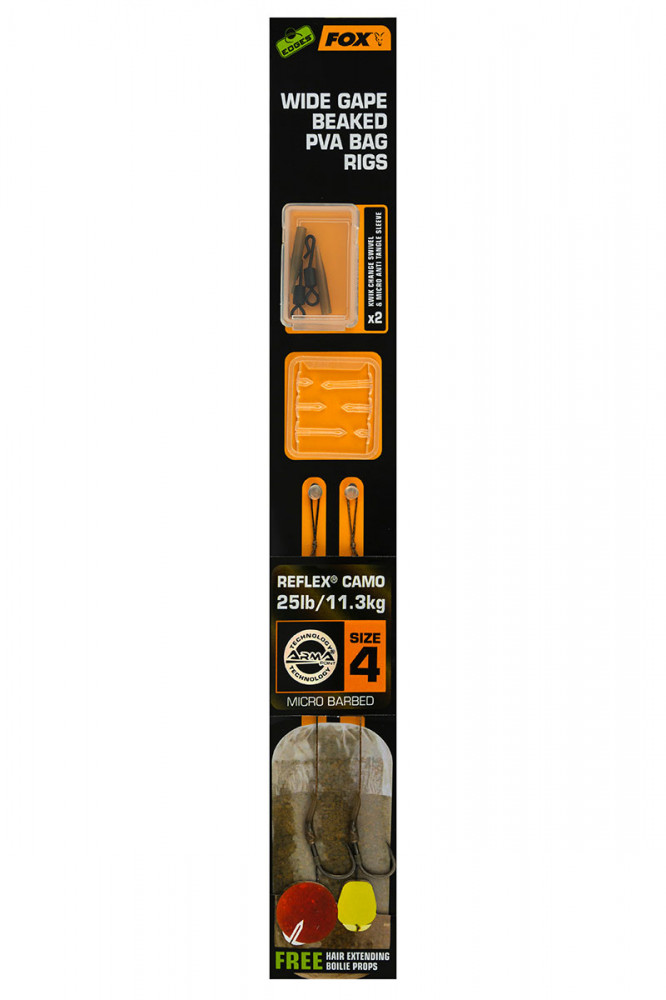 Fox EDGES™ Wide Gape Beaked PVA Bag Rigs 25lb Size 4 Brown & Green Haczyk z przyponem