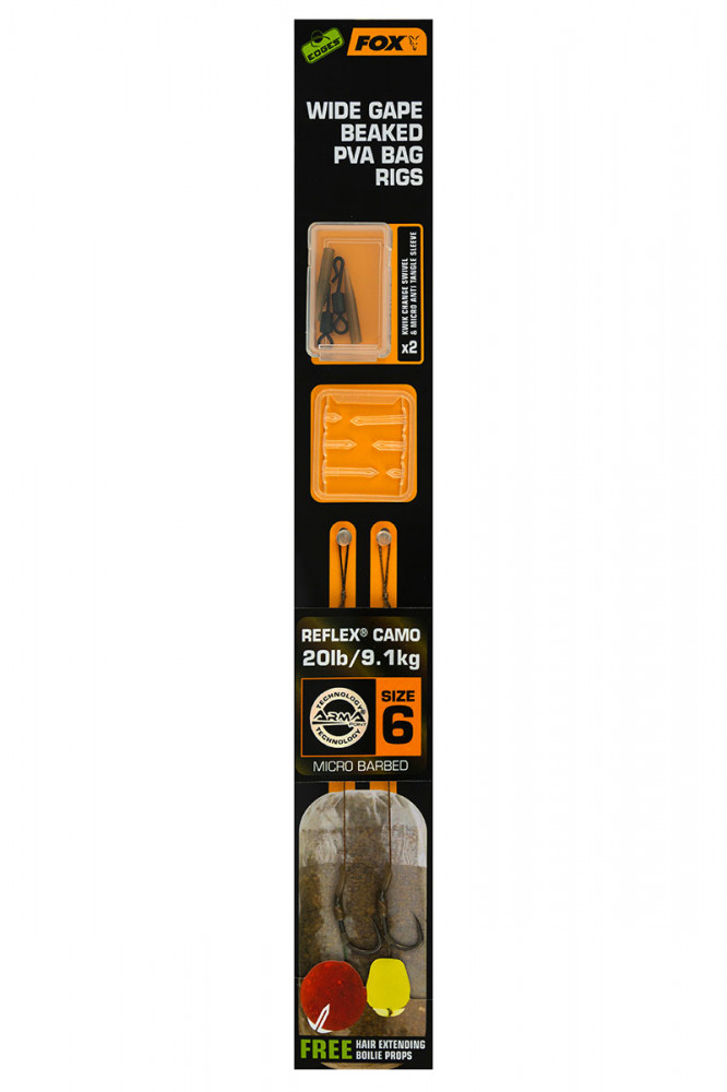 Fox EDGES™ Wide Gape Beaked PVA Bag Rigs 20lb Size 6 Brown & Green Haczyk z przyponem szczegółowy opis