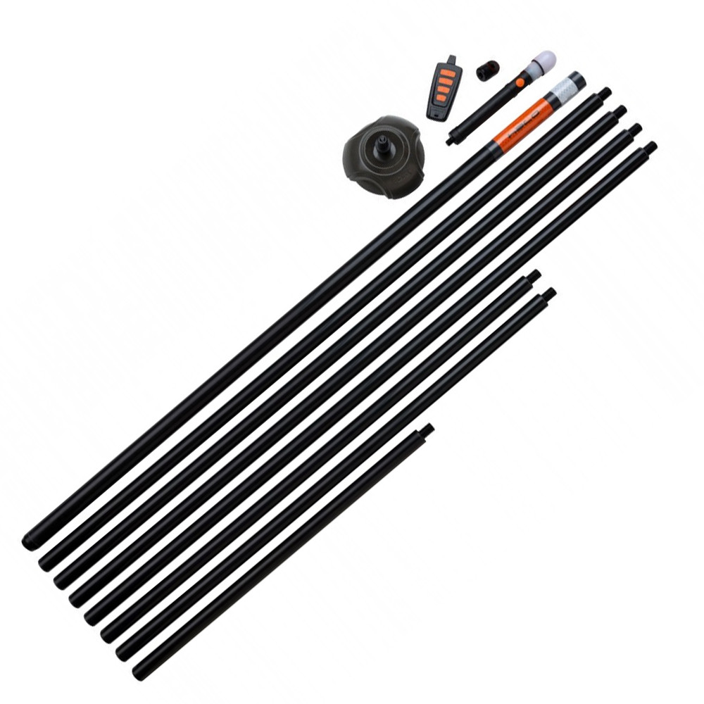 Zestaw zawiera 4 x 1-metrowe, 1 x 0,5-metrowe, 2 x 0,75-metrowe (o średnicy 22 mm) i 1 x 1-metrową sekcję górną (o średnicy 27 mm), co pozwala osiągnąć całkowitą długość 7 metrów. Rurki precyzyjnie pasują do siebie, zapewniając stabilność i wygodne użytkowanie.