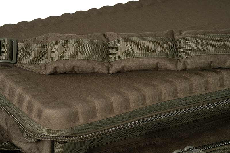 Zewnętrzna powłoka torby wykonana jest w 100% z poliestru, składającego się z odpornego na ścieranie i wodoodpornego materiału poliestrowego 300D. Materiał ten jest szczególnie odporny na użytkowanie w trudnym terenie, a także zapewnia ochronę przed wilgocią i ekstremalnymi warunkami pogodowymi, dzięki czemu torba jest idealnym wyborem na długoterminowe wyprawy wędkarskie. Materiał podszewki i wypełnienia to 96% polietylen i 4% poliuretan, co zapewnia wyściółkę, chroniąc delikatny sprzęt.