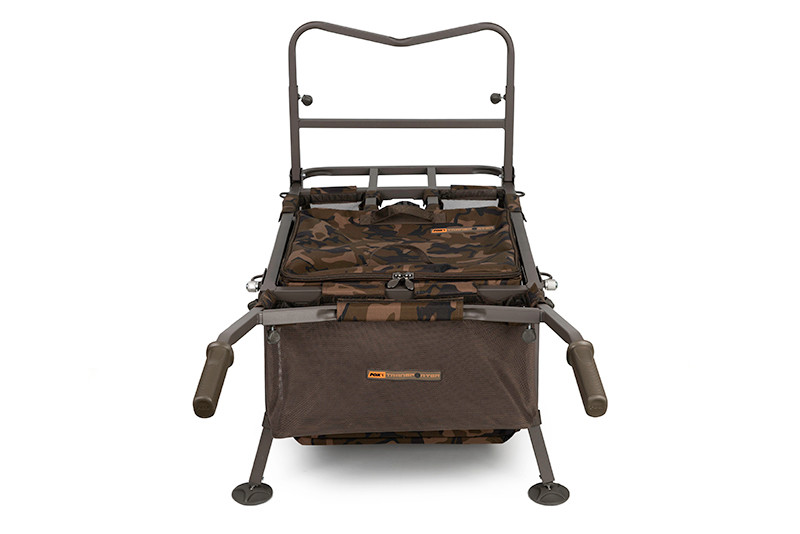 Dostarczone z wózkiem 10-litrowe wiadra Fox można łatwo zamocować, oszczędzając miejsce i optymalizując środek ciężkości. Umieszczona na środku ramy torba Camo Barrow jest idealna do uporządkowania sprzętu. Torba Under Barrow Bag może pomieścić różne torby Fox Camolite i Aquos i jest dostępna z obu stron lub od góry, bez konieczności rozpakowywania wózka. Po obu stronach koła znajdują się dwie siatkowe kieszenie, które są praktyczne na przykład do przechowywania przynęt, butelek lub mniejszych akcesoriów.