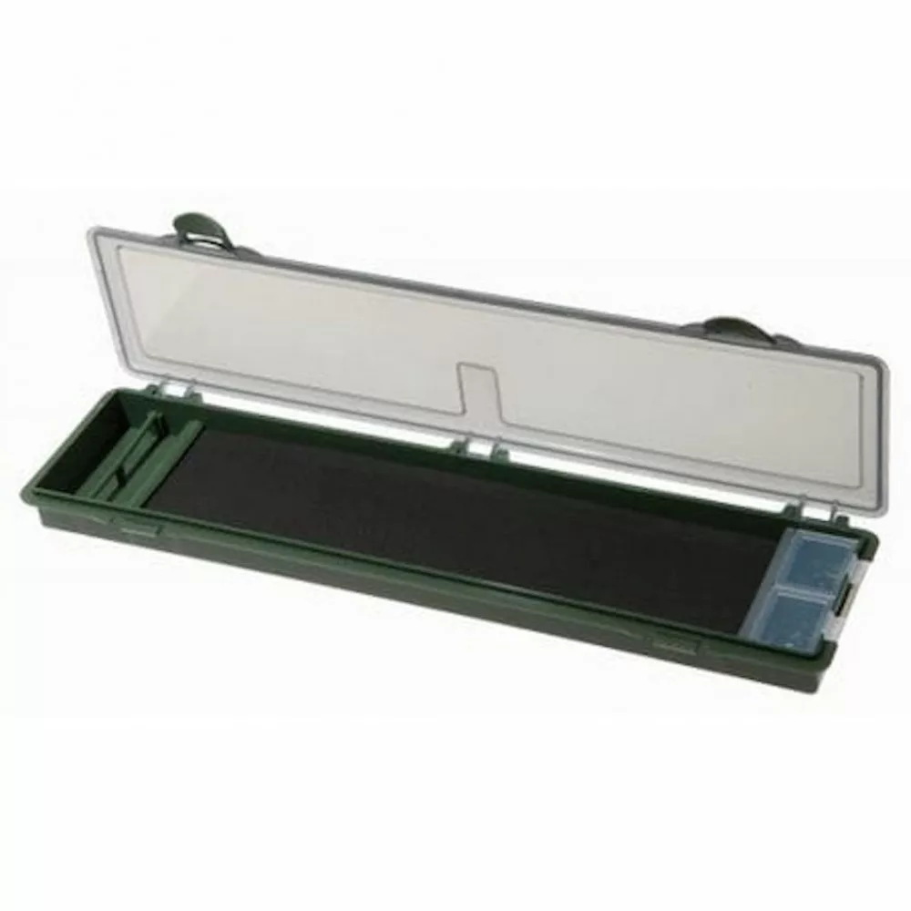 Pudełko na przypony w dużym stopniu ułatwia bezpieczne i wolne od uszkodzeń przechowywanie wcześniej przygotowanych przyponów.