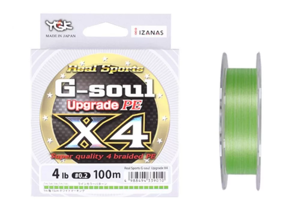 YGK G-soul X4 Upgrade PE - PE0,25(~0,083mm) 150m 4-żyłowa plecionka, fluo zielony kolor Plecionka