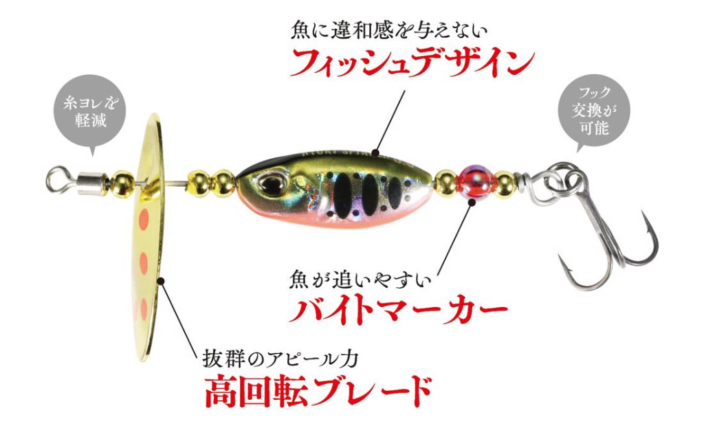 Wyposażony jest w korpus „przynęty” zapewniający dalekie rzuty! Uniwersalny japoński spinner, który może być używany zarówno w wodach stojących, jak i w silnym prądzie.