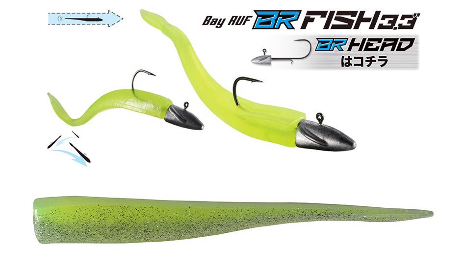 W połączeniu ze specjalnymi główkami jigowymi BR Head, kształt Duo Bay RUF Fish 3.3 umożliwia dwa sposoby mocowania, które różnie poruszają silikonem: