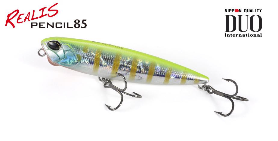 Realis Pencil 85 to mniejsza wersja oryginalnego modelu o długości 110 mm, którą można stosować zarówno w wodach słodkich, jak i słonych. Mniejszy rozmiar kładzie nacisk na „brania”, jednocześnie zachowując doskonałą celność rzutu, ruch i kulisty kształt, który wspomaga rotację.