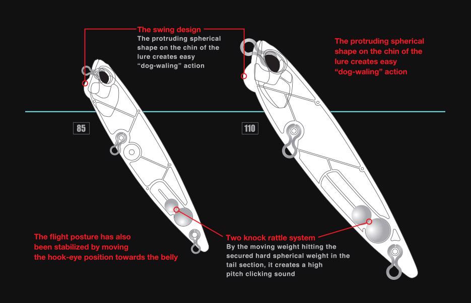 Została wzbogacona o węższy ruch „dog-walking”, który nadaje się nie tylko do przeszukiwania dużych obszarów, ale jest również skuteczny w wodach pod dużą presją. Dziedzicząc boczny ruch modelu 110, Pencil 85 pomaga w skutecznym połowie dzięki ciaśniejszej akcji.