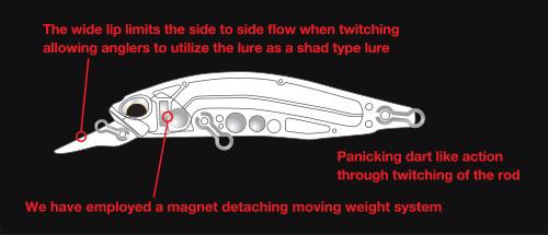 Ruch przynęty jest taki, jakby uciekająca mała ryba próbowała uciec przed drapieżnikiem, wywołując raczej 'krótkie tętniące' pulsowanie, a nie wolny, słaby dryf. Ta akcja aktywuje instynkt żerowania basów, dzięki czemu przyciąga ryby nawet przy prostym, wolno-szybkim zwijaniu.