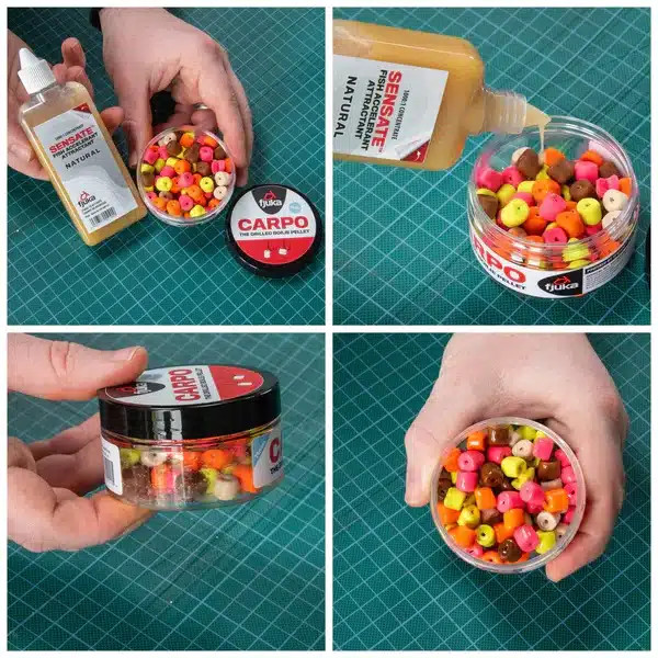Atraktanty aromatu Fjuka Sensate Fish Accelerant Attractant Natural są przenoszone przez bardzo drobne – o średnicy zaledwie 0,4 mikrometra – cząsteczki pokarmu, co oznacza 0,4 tysięcznej milimetra. Zatem gdy Sensate™ dotrze do wody, te cząsteczki natychmiast się rozpraszają, tworząc chmurę zapachową i silny ślad smakowy w przynęcie.