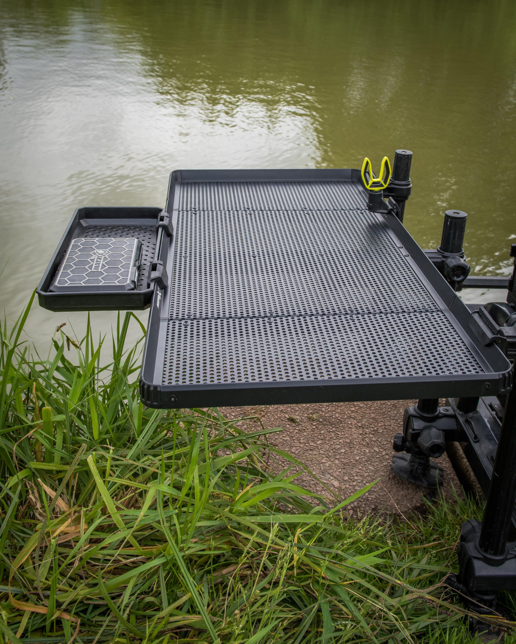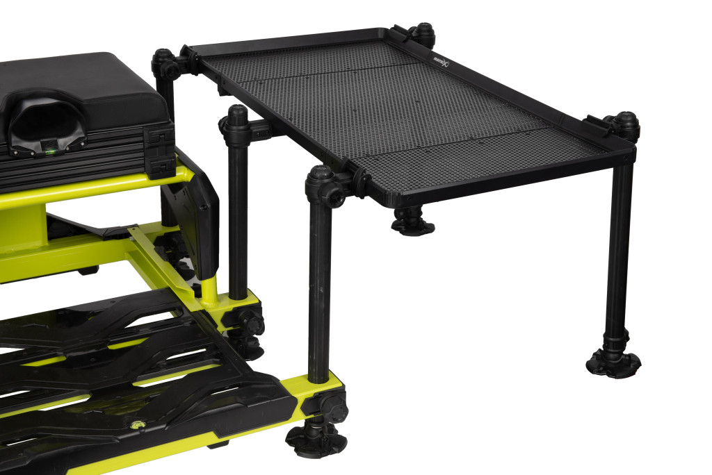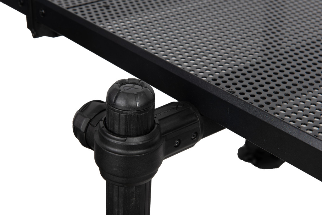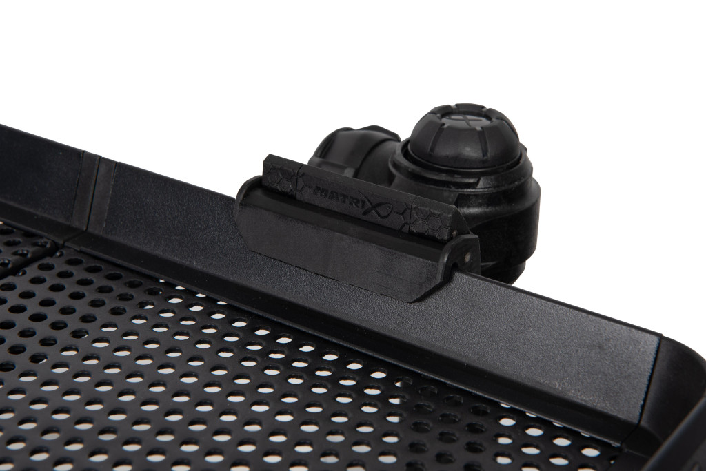Matrix Folding Side Tray XL została wykonana z wyjątkowo mocnym zewnętrznym rantem, który zapobiega zsuwaniu się narzędzi, przynęt czy zanęt oraz zwiększa sztywność konstrukcyjną. Perforowana powierzchnia zapewnia, że woda i zanęta nie zalegają na tacy, dzięki czemu zawsze pozostaje ona czysta i gotowa do użycia. Taca jest kompatybilna z okrągłymi nogami o średnicy 25 mm, 30 mm i 36 mm, dzięki czemu ma szerokie zastosowanie. Ponadto pasują do niej wszystkie akcesoria do tac Matrix, dzięki czemu wędkarz może ją łatwo rozbudować zgodnie z indywidualnymi potrzebami.