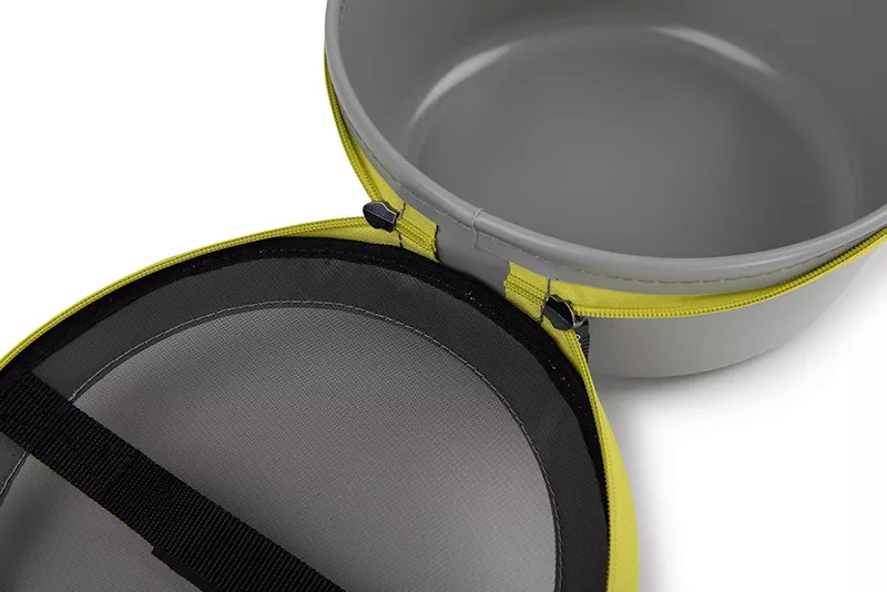 Unikalna formowana podstawa z EVA, siatkowa pokrywa i stożkowe ścianki sprawiają, że można je łatwo układać jedno na drugim. Idealne do przechowywania żywych przynęt. Drobno tkana siatkowa pokrywa z zamkiem błyskawicznym zapewnia bezpieczne przechowywanie i przepuszcza powietrze, dzięki czemu przynęta pozostaje świeża. Duże, zaokrąglone rogi zapobiegają zakleszczaniu się przynęt.