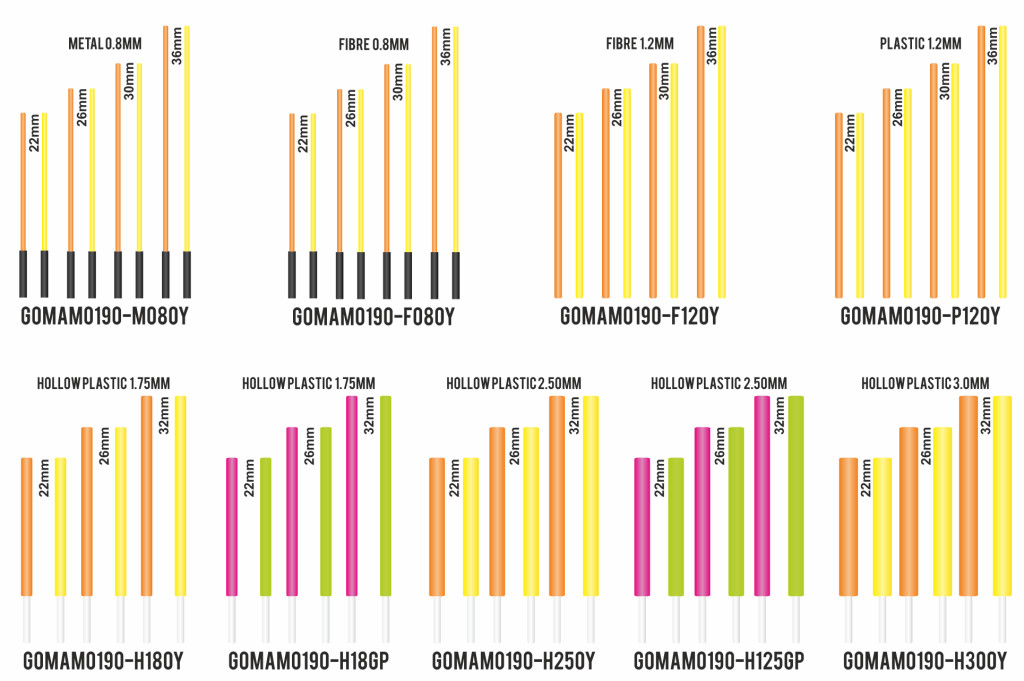 Zestaw anten z pustego plastiku Garbolino Flotteurs Competition Series SP 1,75mm 6szt - Czerwone i Żółte w 3 rozmiarach