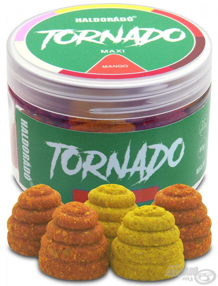 TORNADO MAXI zachowała unikalny kształt przynęt TORNADO, ale w przeciwieństwie do swoich poprzedników jest to przynęta tonąca i rozpuszczalna. Ze względu na zwiększony rozmiar 22 mm została zoptymalizowana dla selektywnych wędkarzy karpiowych, ale może być również rozwiązaniem dla feederowców polujących na kapitałowe ryby, gdy trzeba wyselekcjonować duże okazy. Podczas rozpuszczania nieustannie uwalnia aromaty i smaki, szybko przyciągając uwagę ryb.