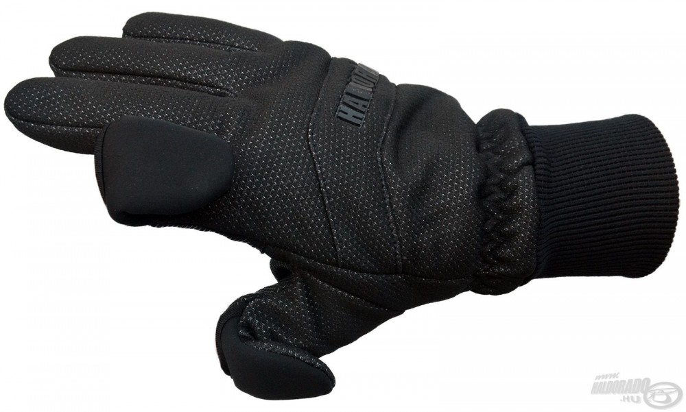 Umiarkowanie wodoodporne, z podszewką z miękkiego polaru. Część nadgarstkowa jest przedłużona, elastyczna, gumowa, dzięki czemu doskonale przylega do nadgarstka, zapobiegając przenikaniu zimna od góry. Część dłoniowa jest gumowana, aby zapewnić stabilne trzymanie nawet mokrej wędki. Kciuk i palec wskazujący można odchylić jednym ruchem i zamocować za pomocą magnesu umieszczonego w materiale. To znacznie lepsze i praktyczniejsze rozwiązanie niż mocowanie na rzep, ponieważ żyłka ciągle się w nim plącze, a tutaj nie ma zbędnych dodatków! Z uwolnionymi końcówkami palców można łatwo zakładać przynętę lub rzucać, a następnie błyskawicznie je schować.