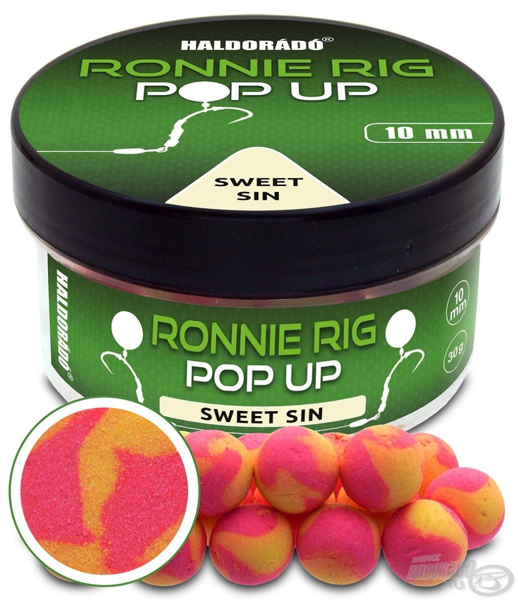 Kulki Ronnie Rig Pop Up 10, 12 i 14 mm-es są dostępne w rozmiarach 10, 12 i 14 mm oraz w czterech łownych wariantach smakowych: Tropical Fruit (smak owoców tropikalnych i kolory fluo pomarańczowy + fluo cytrynowy), Sweet Sin (smak słodkich owoców i kolory fluo różowy + fluo cytrynowy), a Hot Lava (pikantny, ostry smak chilli i kolory fluo czerwony + biały), i a