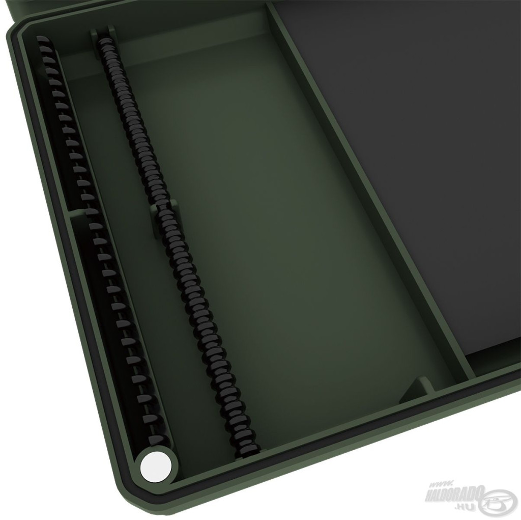 Haldorádó Carp Rigs Box to profesjonalne pudełko na przypony, zaprojektowane specjalnie dla wędkarzy karpiowych, które oferuje skuteczne i bezpieczne rozwiązanie do przechowywania gotowych przyponów haczykowych. Jako część nowej rodziny pudełek