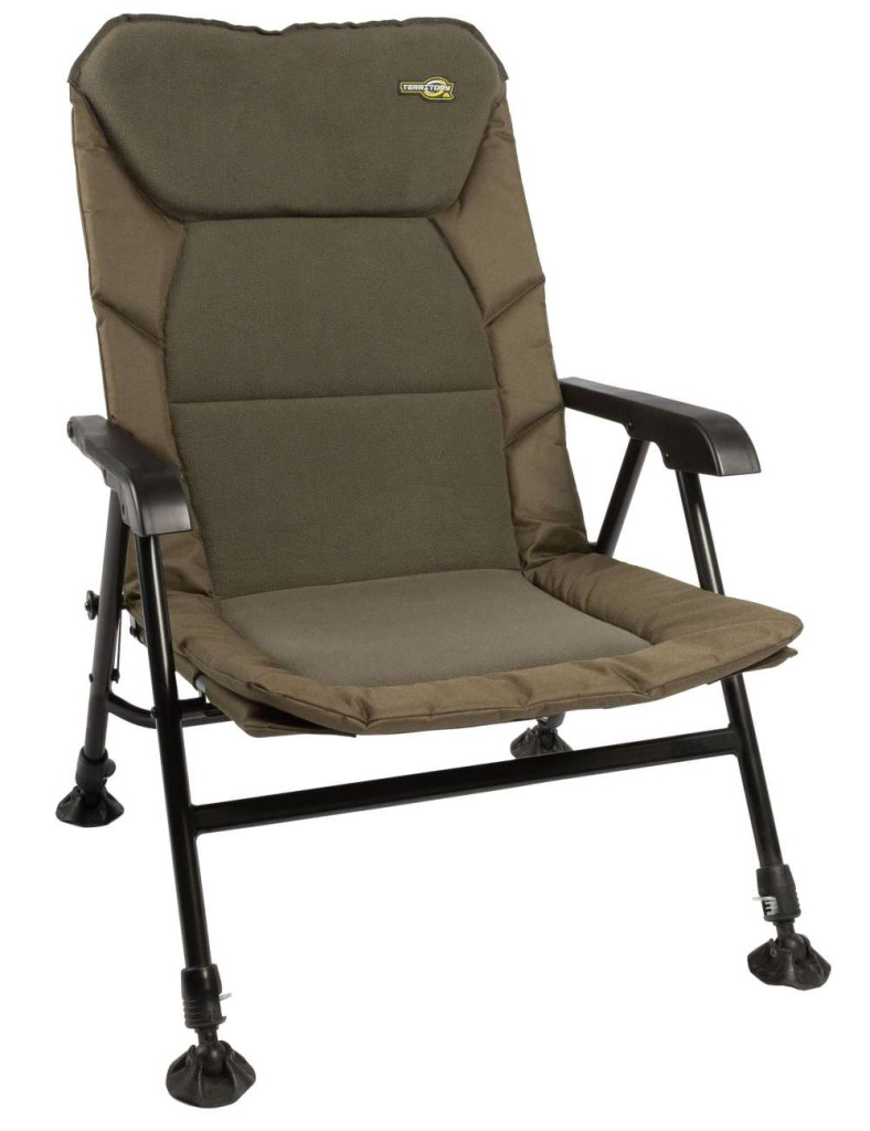 Fotel z podłokietnikami Mikado Territory to siedzisko zaprojektowane specjalnie z myślą o odpoczynku nad wodą i wygodniejszym spędzaniu dłuższych wypraw wędkarskich. Klasycznie zaprojektowany fotel jest stabilny, a jednocześnie łatwy do przenoszenia, dzięki czemu można go łatwo ustawić na brzegu lub w namiocie. Sztywne oparcie zapewnia pewne podparcie, co pozwala na wygodną pozycję siedzącą nawet podczas dłuższego siedzenia.