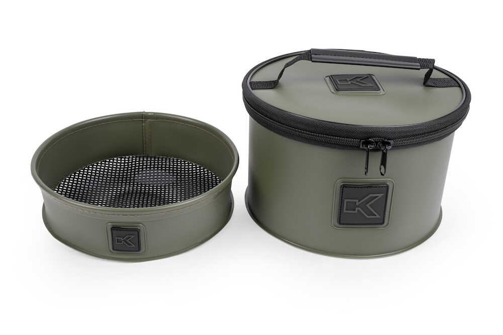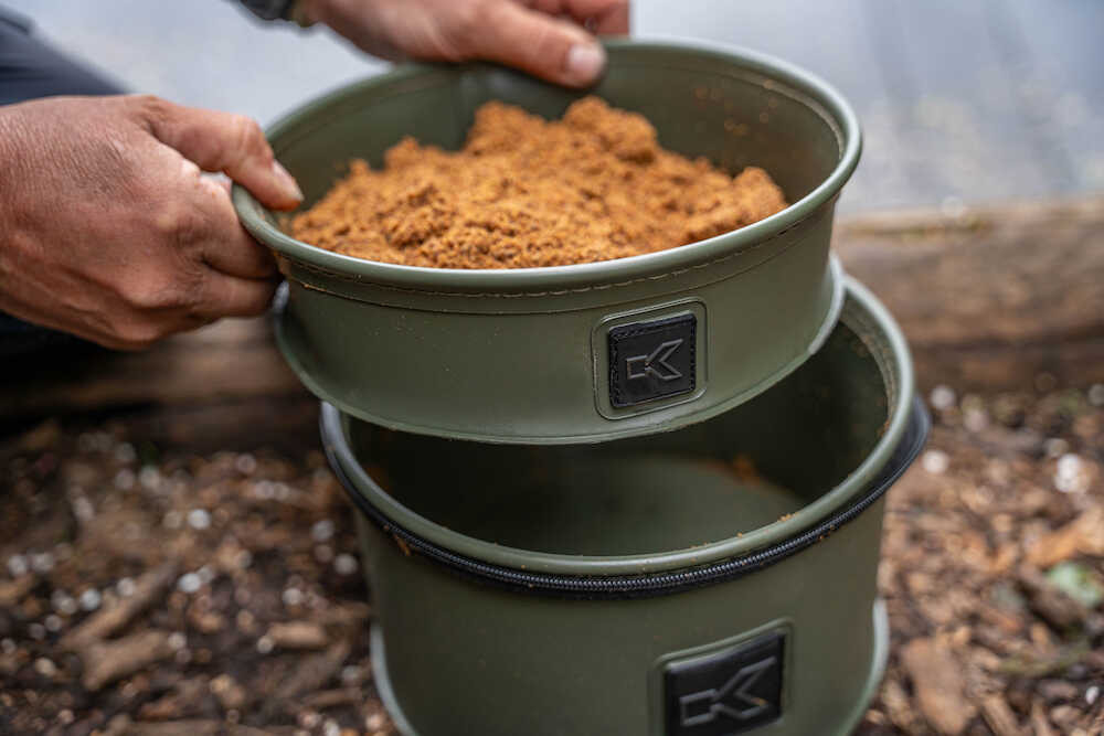 Zawiera uchwyt do przenoszenia. Wewnętrzna wkładka ściśle przylega do góry, umożliwiając swobodne przechodzenie zanęty w razie potrzeby.