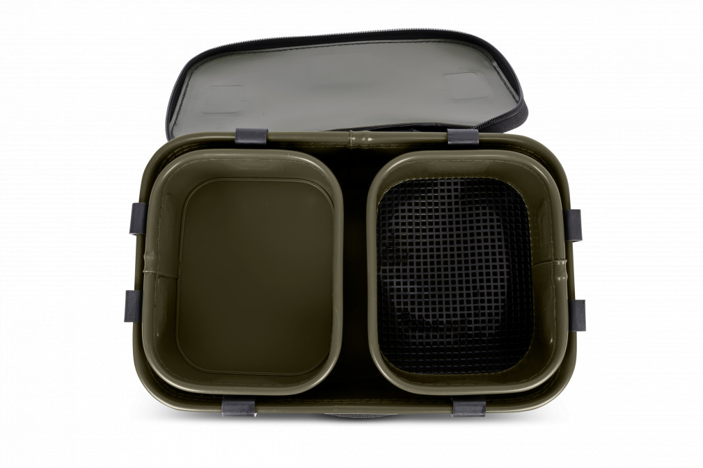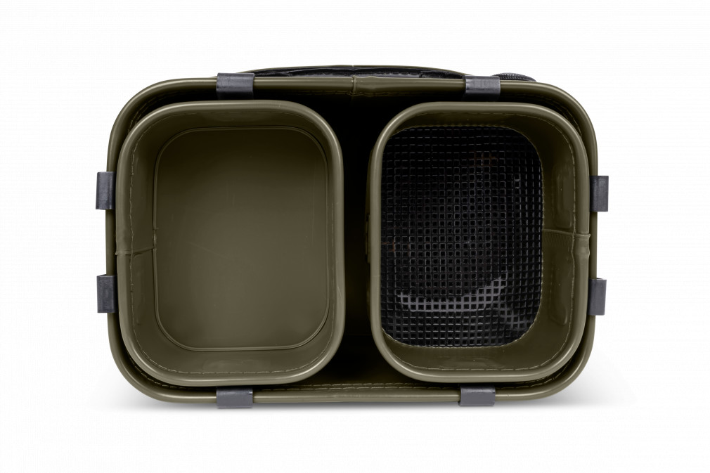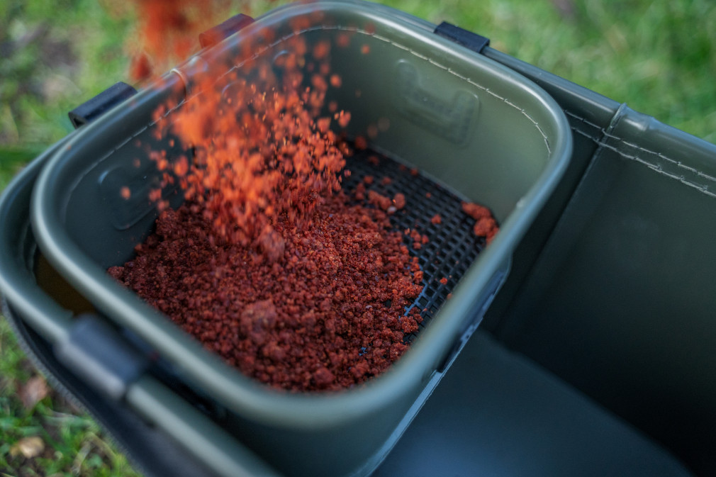 A két belső tálca praktikus és könnyen hozzáférhető, lehetővé téve az etetőanyagok egyszerű kezelését. A hálós tálca lehetővé teszi a felesleges folyadék eltávolítását és a csali száraz állapotának megőrzését. A tálcák rögzíthetőek a táska külsejére használat közben, így nagy munkaterületet biztosítanak. Ez különösen hasznos, amikor több csali és etetőanyag kezelésére van szükség. A kényelmes fogantyú lehetővé teszi a könnyű szállítást, míg a szuper kemény cipzár biztosítja, hogy a táska tartalma biztonságosan és szárazon maradjon. Külső mérete 28x18x18cm, a belső tálcák méretei 15x12x7cm
