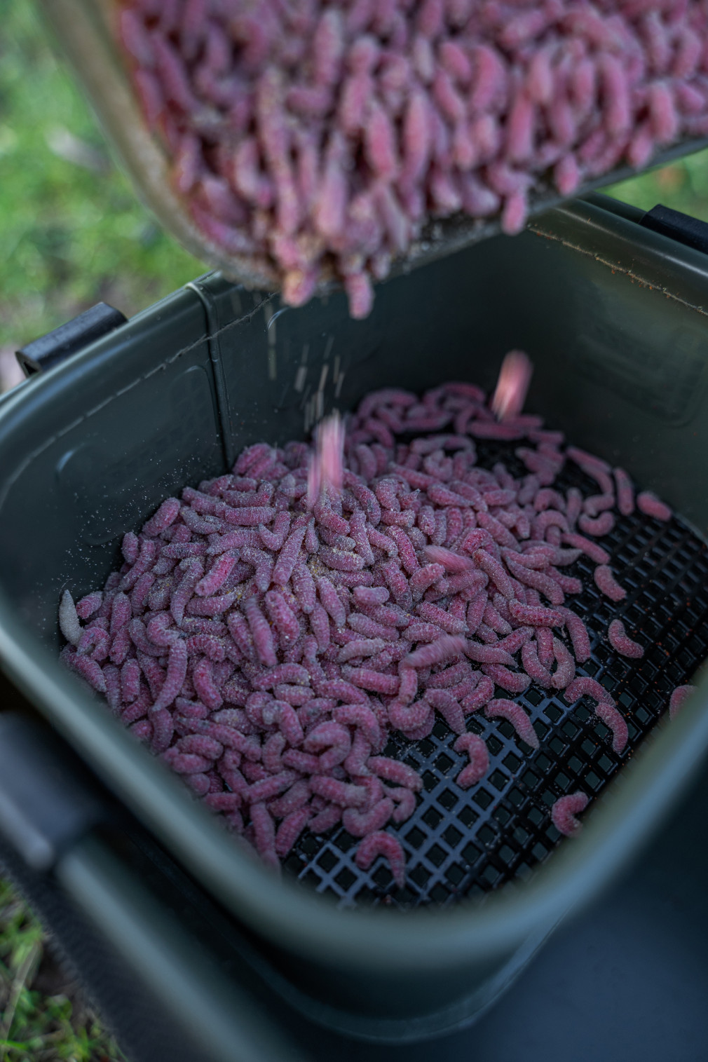 100% EVA anyagból. Ez az anyag rendkívül tartós és ellenálló a nedvességgel és a szennyeződésekkel szemben. Az EVA anyag könnyű, de szilárd, ami biztosítja a csalis táska hosszú élettartamát és megbízhatóságát. A táska vízálló EVA anyagból készült, ami védi a belső tartalmat az esőtől és nedvességtől. Ezen kívül könnyen tisztítható, ami különösen hasznos az etetőanyagok kezelése során. Az egyik belső tálca 3 mm-es hálóval rendelkezik, amely lehetővé teszi a természetes etetőanyagok és etetőanyagok kidobását. Ez a háló segít a nedvesség eltávolításában és a csali frissességének megőrzésében.