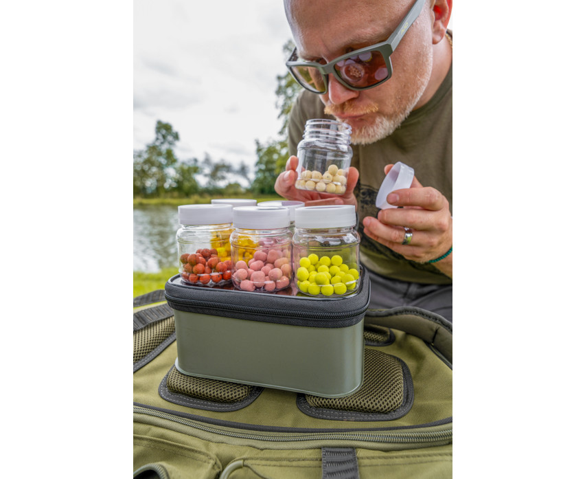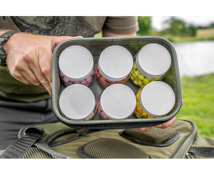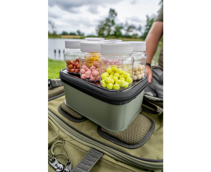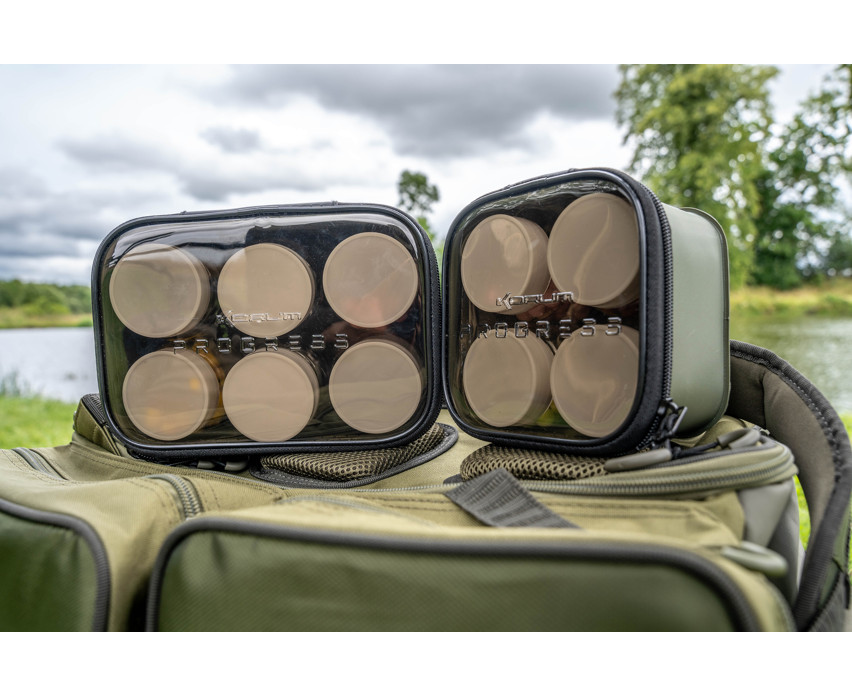Przy projektowaniu tych przydatnych akcesoriów ważnym aspektem było ich idealne dopasowanie do oferty toreb Korum. Dostępne w zestawie z pojemnikami na przynęty. Dzięki dymno-szarym, przezroczystym pokrywkom łatwo widać, co jest w środku. Wykonane z odpornego na ścieranie, trwałego materiału EVA, co pozwala na długotrwałe użytkowanie.