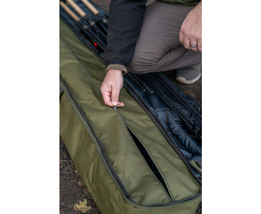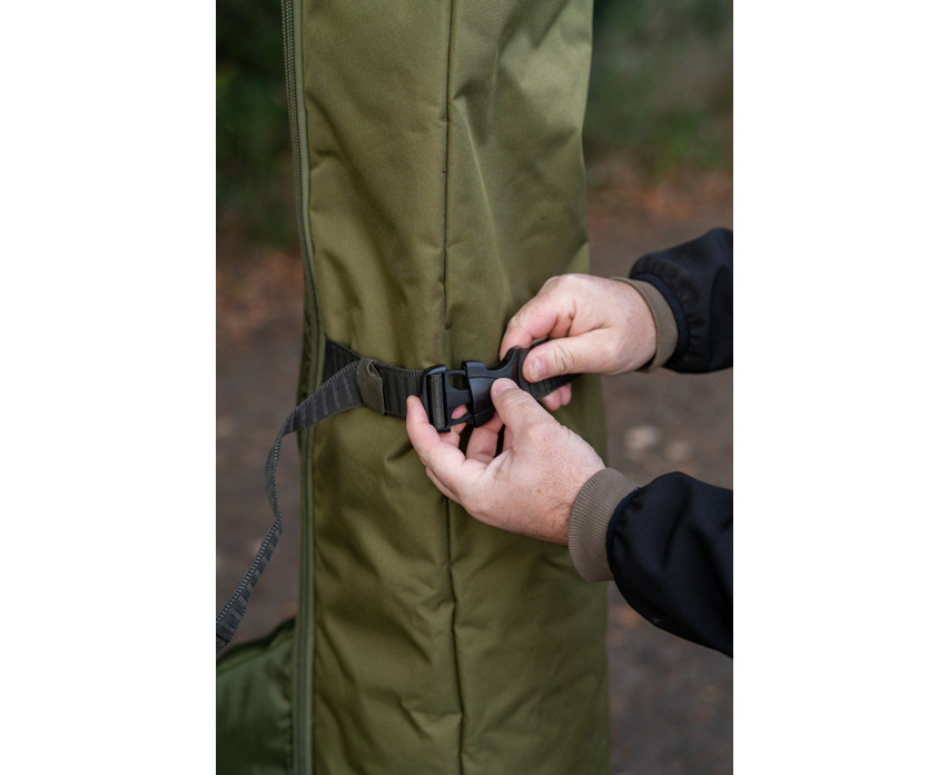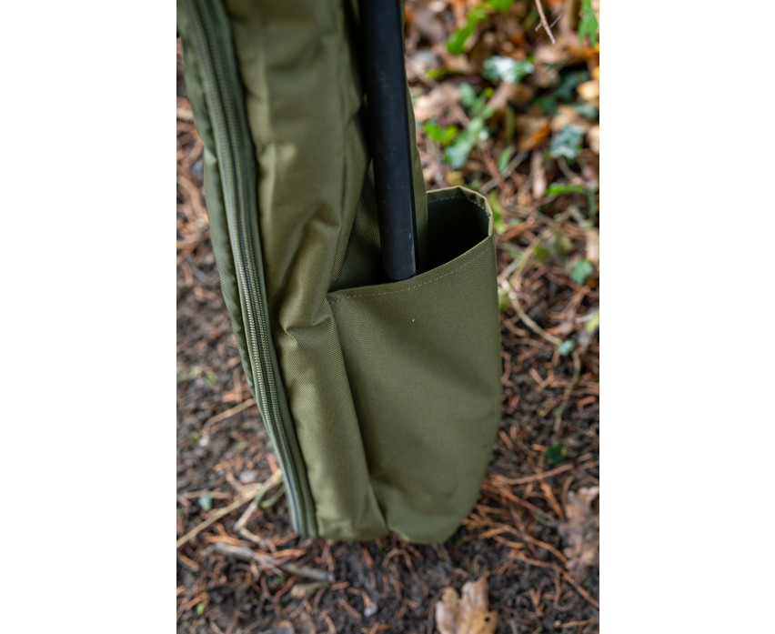 An innovative, new way to transport rigged rods and reels together with tents, brollies and other bankside gear. The compartment designed for rods is kept away from the rear tent holder section by a hinge, thus providing all the benefits of a safe rod bag for rod protection. The sufficiently large, padded section is designed for comfortable placement of rods and reels, as well as a larger rear storage area that can accommodate all Korum tents or brollies. It also includes a simple outer pocket for net heads, net handles or banksticks. There is also an external pocket and strap for wet gear, such as tents, tripods and nets. With a detachable and adjustable padded shoulder strap for comfortable transport. All bags have the following features: