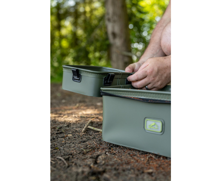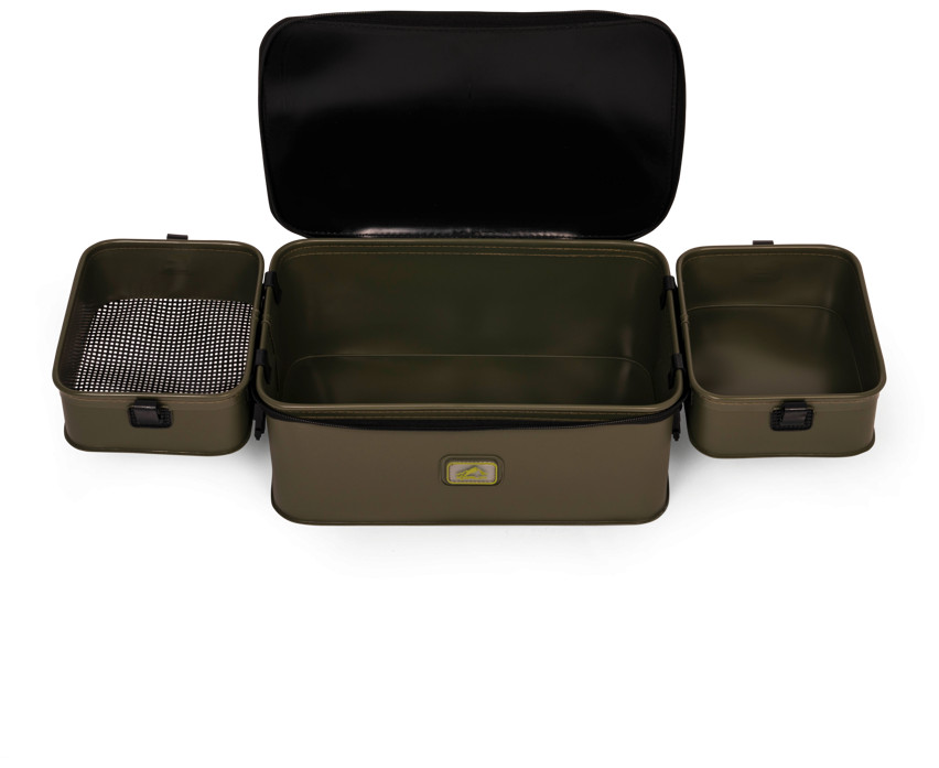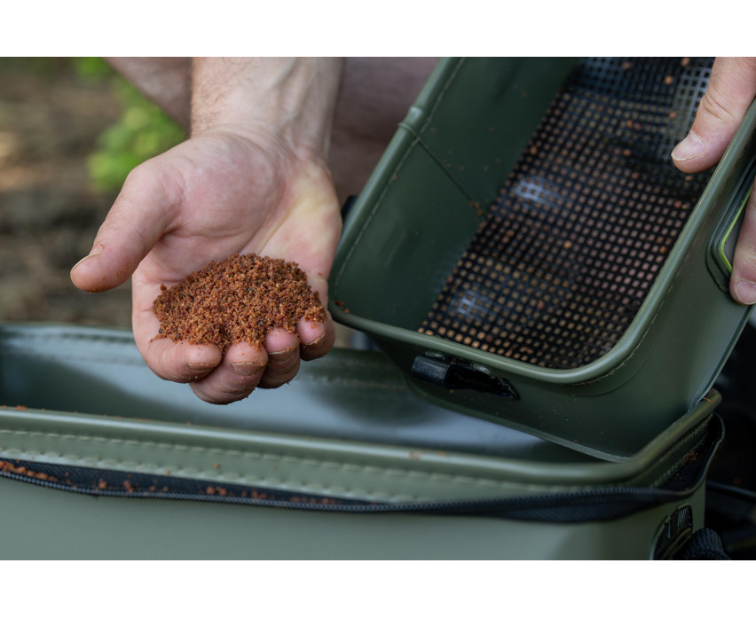 Torba jest wyposażona w dwie wewnętrzne tacki, z których jedna posiada siatkę o grubości 3 mm, dzięki czemu doskonale nadaje się do przesiewania żywych przynęt lub zanęt. Tacki mogą być przypięte do brzegu torby z zewnątrz podczas użytkowania, co zapewnia wędkarzowi większą powierzchnię roboczą, co jest szczególnie przydatne podczas przygotowywania zanęty lub zestawu. Pod tackami jest wystarczająco dużo miejsca na pojemniki na przynęty, przynęty haczykowe i inne zanęty, dzięki czemu wszystkie ważne narzędzia mogą być pod ręką.