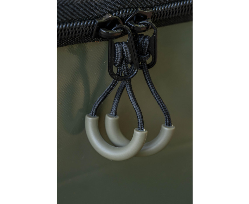 Pod tackami jest wystarczająco dużo miejsca na pojemniki na przynęty haczykowe, zanęty i inne akcesoria, dzięki czemu wszystkie ważne narzędzia mogą być pod ręką. Materiał torby to 100% EVA (octan etylenu i winylu), który jest wodoodporny, lekki i niezwykle odporny na uszkodzenia mechaniczne. Solidny zamek błyskawiczny i wygodny, odpinany pasek na ramię zapewniają łatwy transport i niezawodne użytkowanie.