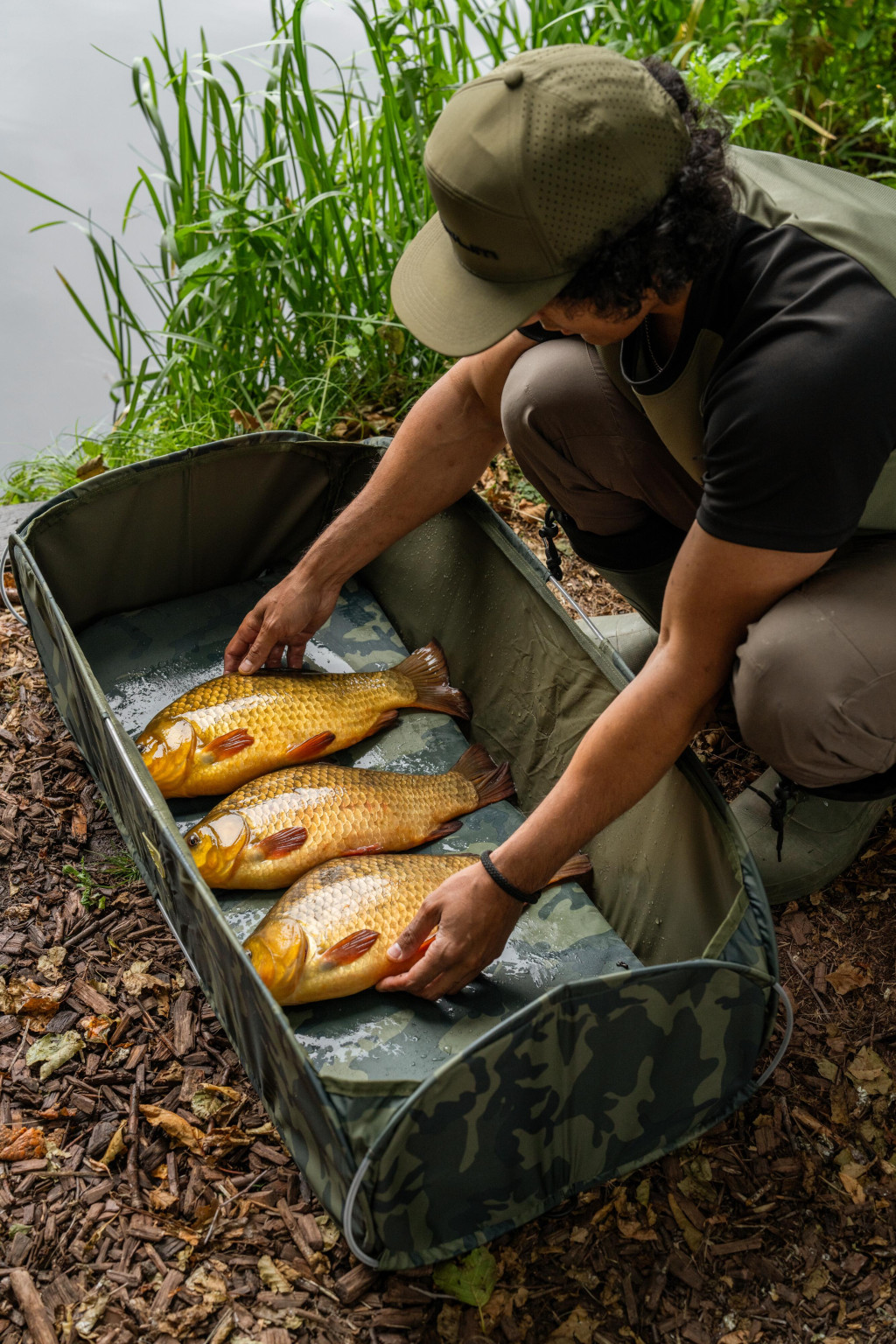 Kiedy uda się wyholować kapitalnego karpia na brzeg, priorytetem jest bezpieczeństwo i delikatne obchodzenie się z rybą. Często spotykamy się z sytuacją, że po męczącym, udanym braniu nie mamy odpowiedniego narzędzia do bezpiecznego ułożenia złowionego karpia i jego odhaczenia. Mata do odhaczania karpi Korum Camo Fast Mat została stworzona dokładnie w tym celu, aby po męczącej walce złowiona ryba była w jak największym komforcie i bezpieczeństwie podczas odhaczania i robienia zdjęć.