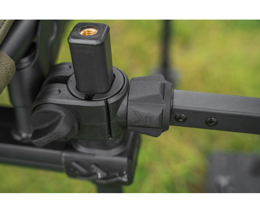 System Any Chair przekształca krzesła w całkowicie modułowy system wyposażenia. Po prostu otwórz zawias, aby przymocować do krzesła i użyj dołączonych wkładek, aby uzyskać najlepsze dopasowanie. Za pomocą bocznych śrub mocujących możemy ustawić najlepszy kąt w zależności od sytuacji. Dostarczany z okrągłymi wkładkami 23 mm, okrągłymi 25 mm i kwadratowymi 23 mm. Pasuje bezpośrednio do krzeseł Korum X25 i S23 Accesory.