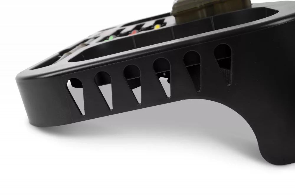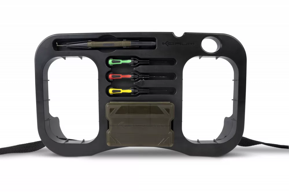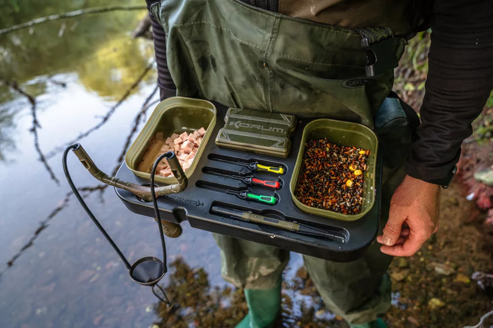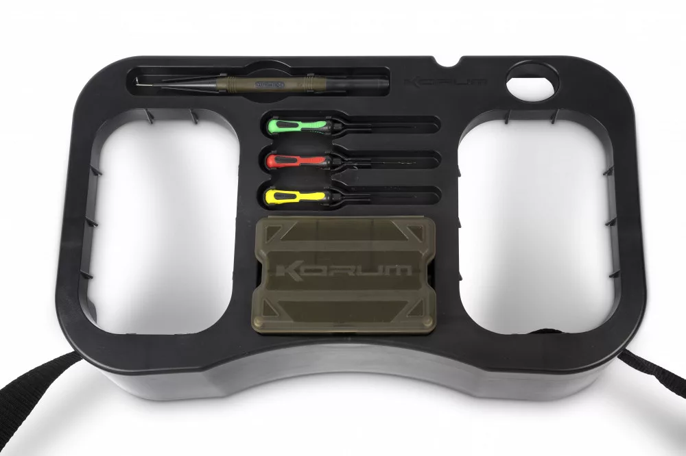 Korum Glide Trotting Tray to innowacyjna i wszechstronna taca na akcesoria, idealna do łowienia karpi, a w szczególności do wędkarstwa feederowego. Niezależnie od tego, czy łowisz na płytkich, czy głębszych wodach, ta taca może być Twoim doskonałym towarzyszem podczas łowienia. Tę sprytnie zaprojektowaną tacę możesz przymocować do pasa, ale także zamocować samodzielnie na sztycy lub statywie. Niezależnie od wybranego rozwiązania, z pewnością otrzymasz doskonałe miejsce do przechowywania sprzętu i przynęt. Dzięki swojej konstrukcji można w niej bezpiecznie umieścić mniejszy pojemnik na przynęty o pojemności 0,6l, idealnie mieści się w niej również w pełni załadowane pudełko Bits Blox, a nawet znajdzie się miejsce na zapasowe przypony. Idealny wybór do metody spławikowej, ale może być również pewnie stosowany w innych stylach. Z igłami do przynęt i wypychaczem do haczyków, z regulowanym pasem biodrowym.