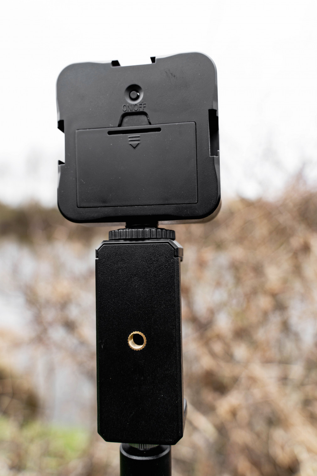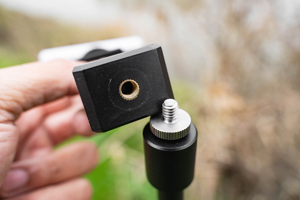 Adapter posiada gwinty 1/4' i 3/8', które są kompatybilne z większością statywów kamer i innymi opcjami montażu. Adapter umożliwia również łatwe podłączenie urządzenia do podpórki. Urządzenie działa na baterie AA, które nie są dołączone, więc użytkownicy muszą zapewnić baterie do użytku.