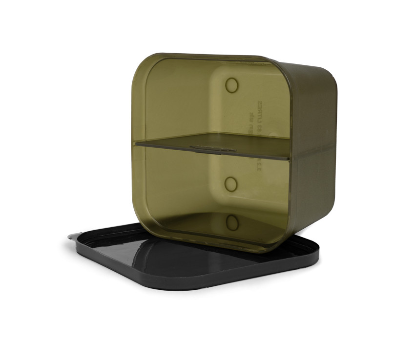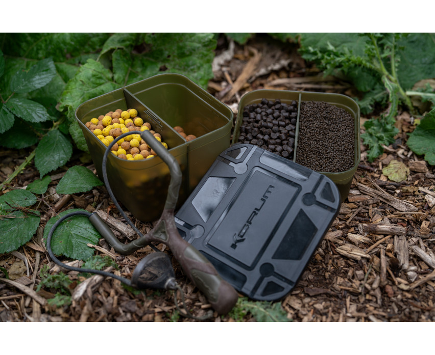 Ta nowa konstrukcja umożliwia przechowywanie różnych przynęt i zanęt w tym samym pojemniku, doskonale oddzielonych od siebie za pomocą bezpiecznie dopasowanej przegrody. Dostępny w zestawie ze szczelnie zamykaną pokrywką.