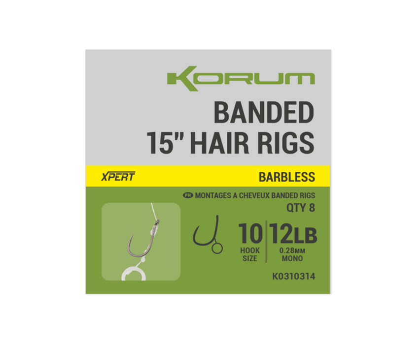 Podczas projektowania ważnymi aspektami były wytrzymałość i trwałość, które są niezbędne podczas łowienia większych ryb. Przypon Banded Hair Rig, dzięki zastosowaniu grubszej żyłki przyponowej i mocniejszego haka, jest idealnym przyponem do łowienia dużych ryb. Wyposażyliśmy go w specjalny, trwały pierścień na przynętę, który przewyższa jakością tradycyjne mocowania lateksowe.