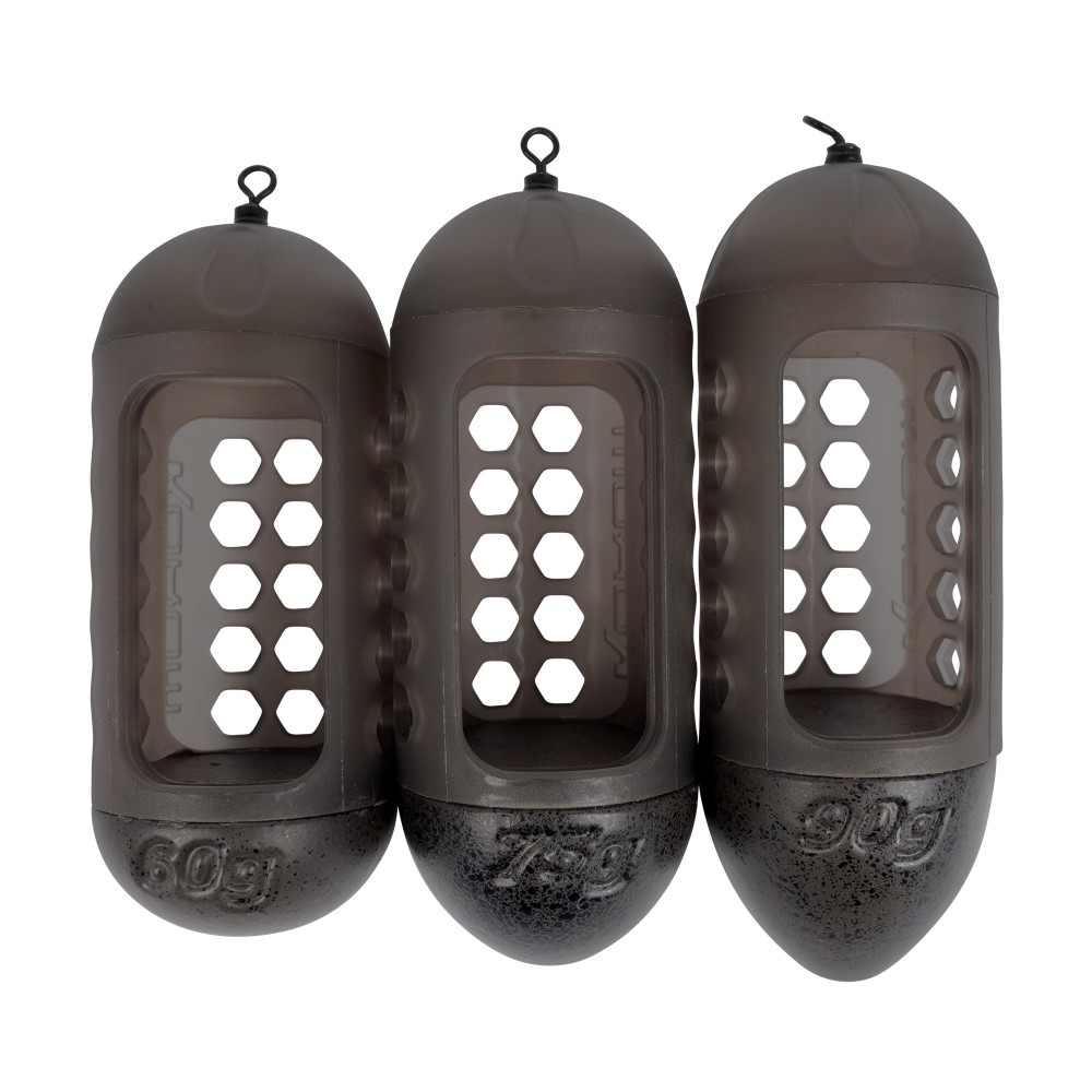 A kosár kiváló minőségű, erős és tartós műanyagból készült, amely ellenáll az ütéseknek és a kopásnak. A műanyag UV-álló, így hosszú ideig megőrzi eredeti állapotát még erős napfény hatására is. Az etetőkosár alsó részén elhelyezett súlyok ólommentes fémötvözetből készültek, amely környezetbarát és megfelel a modern horgászati előírásoknak. A kosár hálós része finom, de erős szálakból szőtt, amelyek biztosítják a csali megfelelő kioldódását és a stabil szerkezetet. Kialakításának köszönhetően az etetőanyag könnyedén kioldódik a kosárból, de dobás közben biztosan nem szóródik ki belőle. Az egyedi ablakos dizájn lehetővé teszi a csali gyors és pontos elhelyezését a kívánt horgászterületen, javítva a csali kioldódását és vonzerejét. Az etetőkosár kombinálható különböző típusú etetőanyagokkal, beleértve a pelleteket, groundbaitet és élő csalit is. A kosár súlyozott alja biztosítja a stabilitást a vízben, csökkentve a sodródás és elmozdulás esélyét, még áramló vizekben is. A kosár széles nyílása megkönnyíti az etetőanyag betöltését és a gyors újratöltést, időt spórolva a horgászat során. Az anyagösszetétel biztosítja a kosár hosszú élettartamát és megbízhatóságát, még intenzív használat mellett is.Az egyik legpontosabban dobható kosár, ha helikopteres végszerelékkel horgászunk compóra, keszegre, bodorkára és pontyra. Elérhető méretek: 45g, 60g, 75g, 90g.