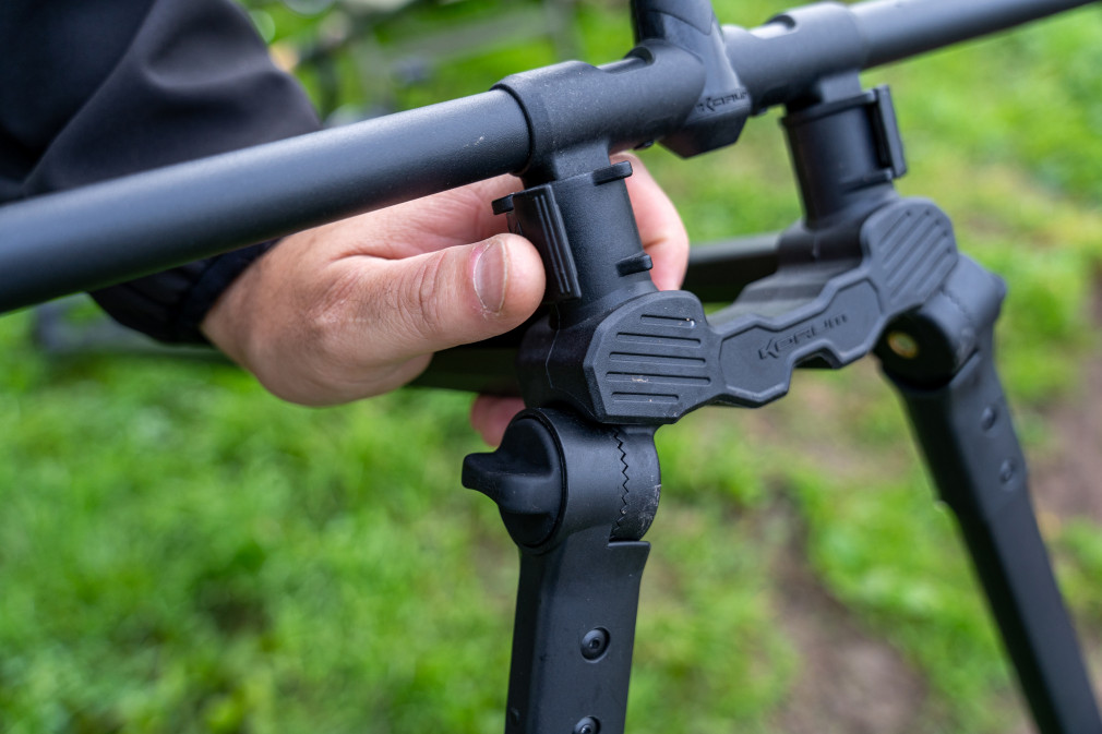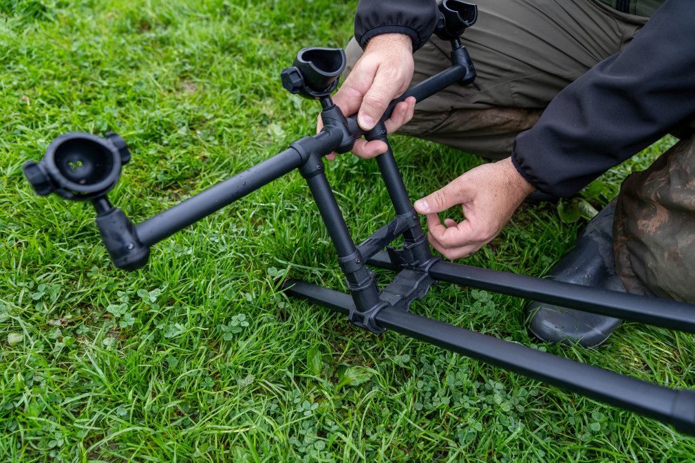 Statyw wykonany jest z antypoślizgowych profili, które zapewniają stabilność i bezpieczeństwo statywu podczas użytkowania. Zaciski krzywkowe do regulacji, te regulacje umożliwiają szybkie i łatwe ustawienie i spakowanie, a także zapewniają stabilność i równowagę. Z podwójną ramą, podwójna rama może być wydłużana podczas użytkowaniu, ale ładnie składa się za pomocą zacisków krzywkowych, co sprawia, że transport jest prosty i kompaktowy. Grube, 3-wędkowe buzz-bary są mocowane za pomocą zacisków krzywkowych, które umożliwiają szybką konfigurację i demontaż. Mocowanie w dwóch miejscach doskonale eliminuje skręcanie lub brak równowagi. Przednie nogi można regulować pod praktycznie każdym kątem i zapewniają również regulację wysokości za pomocą zacisków krzywkowych, dzięki czemu statyw można stabilnie ustawić w każdym terenie.Długość nóg wynosi od 1m do 1,85m, szerokość buzz-barów 50cm i 52cm, długość transportowa 1,2m, waga 2kg.
