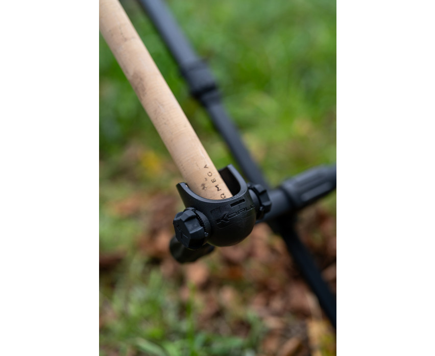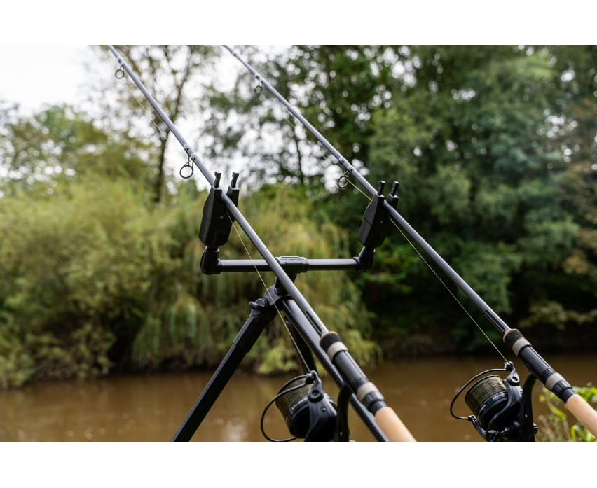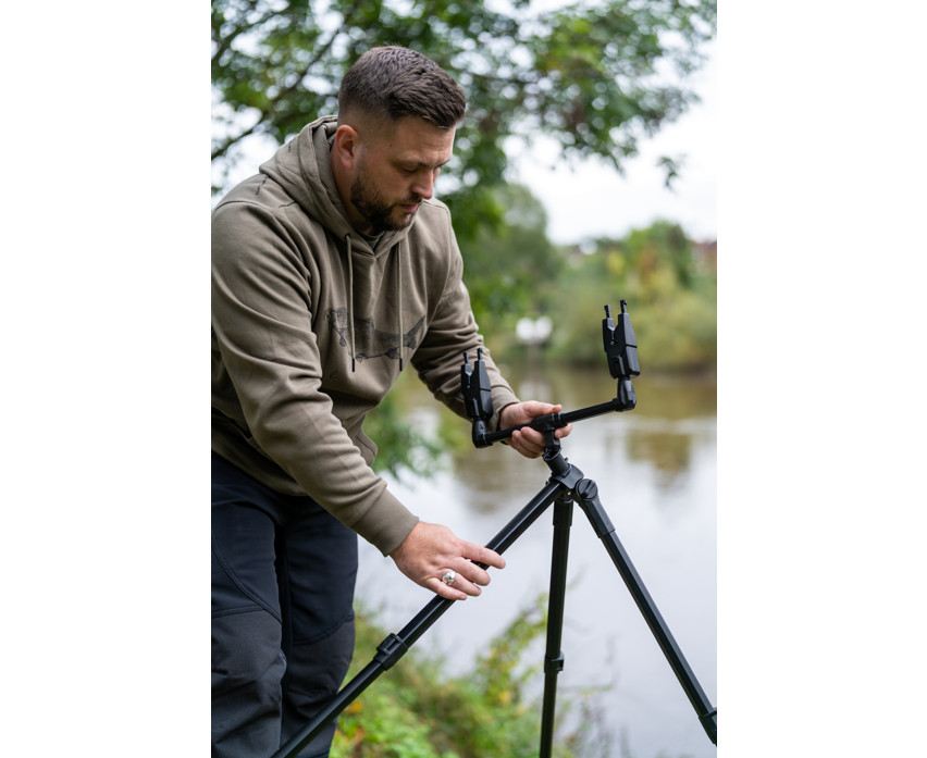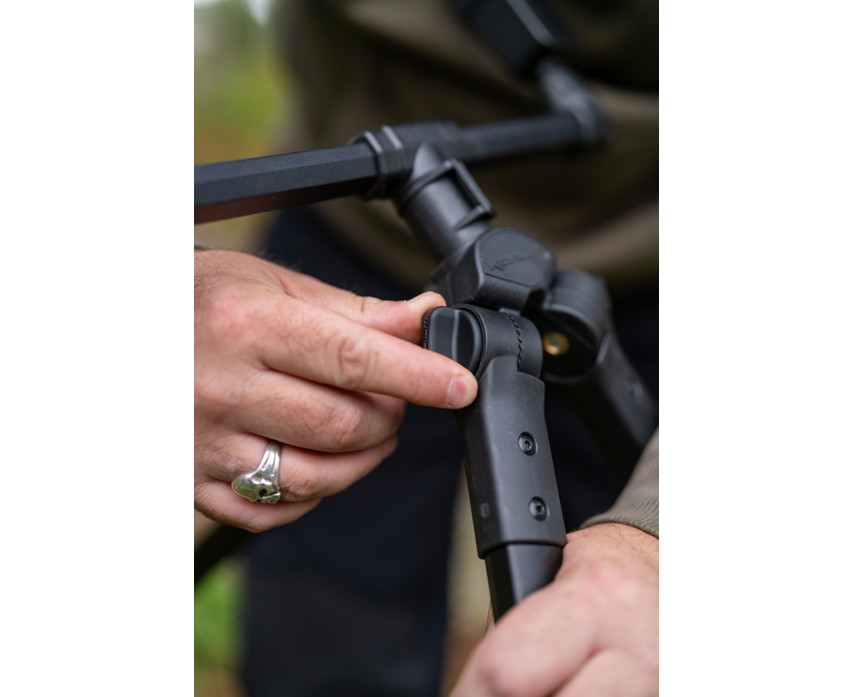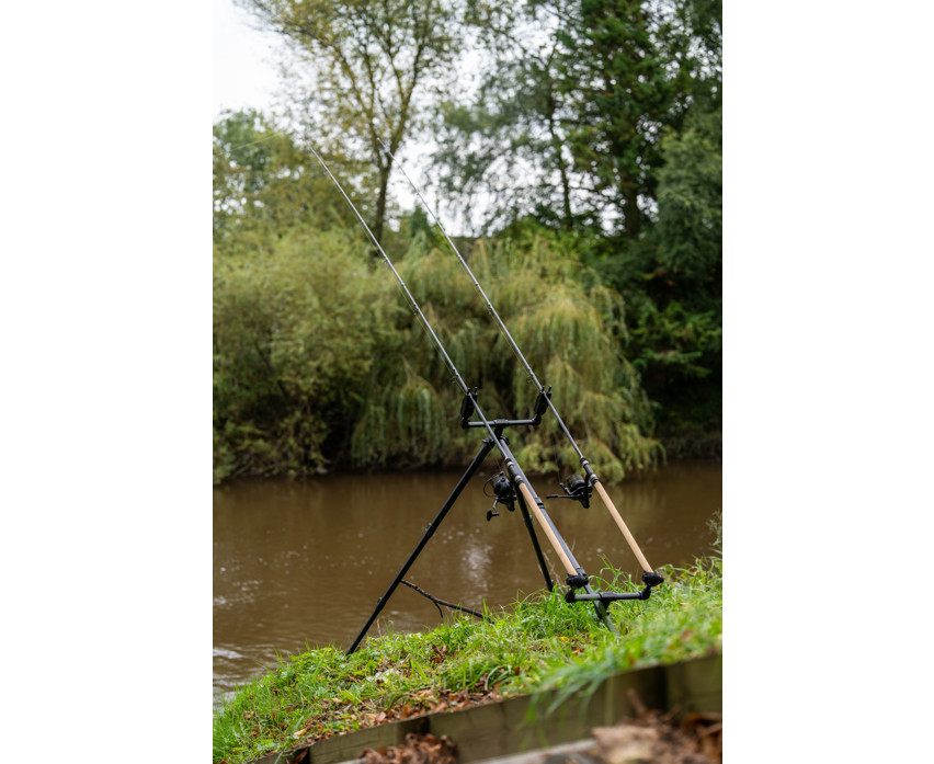 Progress Compact River Tripod three-legged stand. A compact version of our legendary River Tripod, now with front and rear buzz bars. This super stable setup is made with anti-twist extrusion, which guarantees a wobble-free support for rods and reels. The frame can be extended during use, but thanks to the double Cam Lock fasteners, it can be easily packed away, thus taking up much less space during transport. The thick buzz bars are incredibly strong and feature an excellent, threadless quick-release system, so there's no need to screw them in or out during assembly and disassembly. Simply press the Cam Lock release, insert the elements into place, and you're ready to fish! The rear buzz bar can be adjusted to different tilt positions.