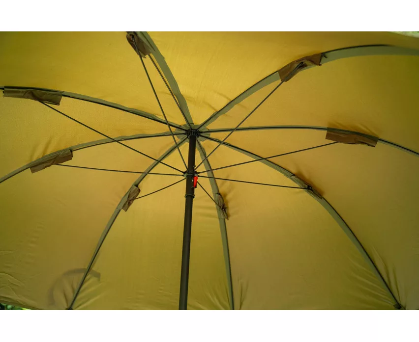 Materiał poszycia to wodoodporna tkanina o odporności na słup wody 5000 mm, która skutecznie chroni przed deszczem i wilgocią. Wzmocnione, klejone szwy i połączenia zapewniają, że parasol zachowa swoje właściwości wodoodporne przez długi czas, nawet przy intensywnym użytkowaniu. Połączenie stabilnej konstrukcji i klasycznego kształtu zapewnia wędkarzowi komfortowe schronienie, jednocześnie nadając sprzętowi elegancki wygląd.