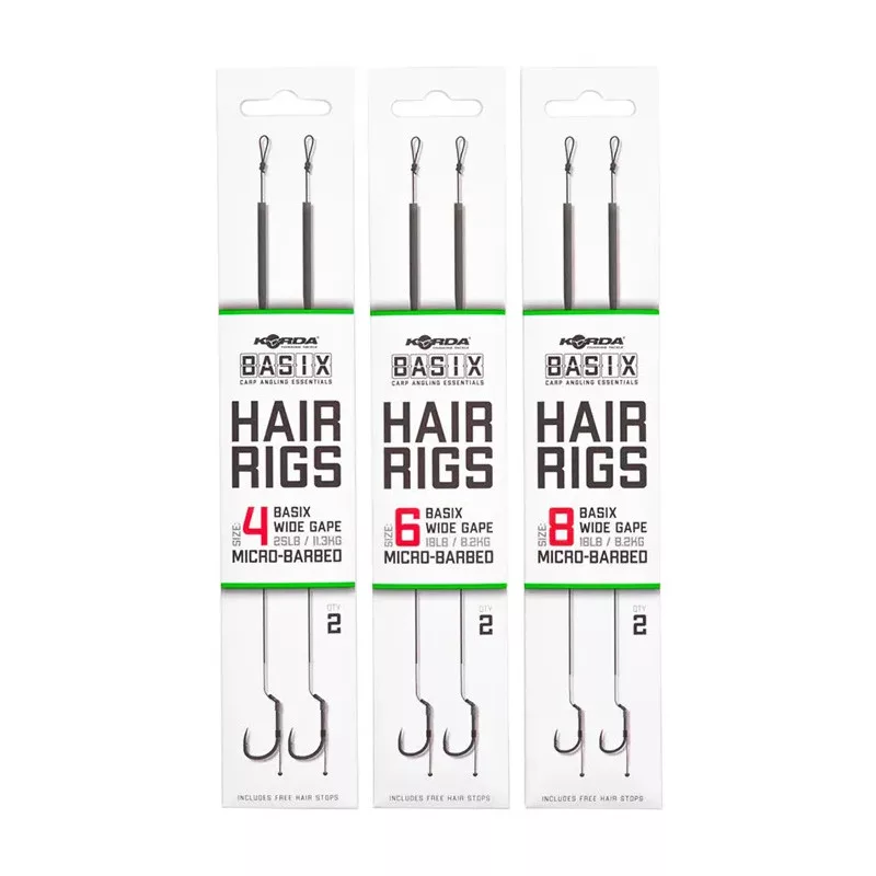 Korda Basix Hair Rigs Wide Gape 6 18lb Haczyk z zadziorem i uszkiem, wstępnie zawiązany, 2 szt.