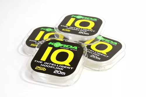 Korda IQ Fluorocarbon Hooklink to żyłka przyponowa z fluorocarbonu, która dzięki współczynnikowi załamania światła podobnemu do wody jest praktycznie niewidoczna w wodzie. W porównaniu do zwykłych żyłek poliamidowych mono jest nieco sztywniejsza, dzięki czemu nie ma tendencji do plątania się, a karpiowi trudniej jest wypluć haczyk zawiązany na takim przyponie. Produkt dostępny jest w wariantach o wytrzymałości 10, 15, 20 i 25 lbs, w opakowaniach po 20 metrów. Wariant 10 lbs jest zalecany do delikatnych zestawów; warianty 15 i 20 lbs to uniwersalnie stosowane żyłki przyponowe; a wariant 25 lbs jest bardziej odpowiedni do tworzenia bardzo sztywnych zestawów końcowych (tzw. 'stiff rig').